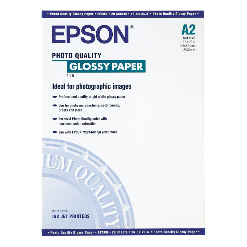 C13S041123 Фотобумага Epson глянцевая, A2/141г/м2/20 листов