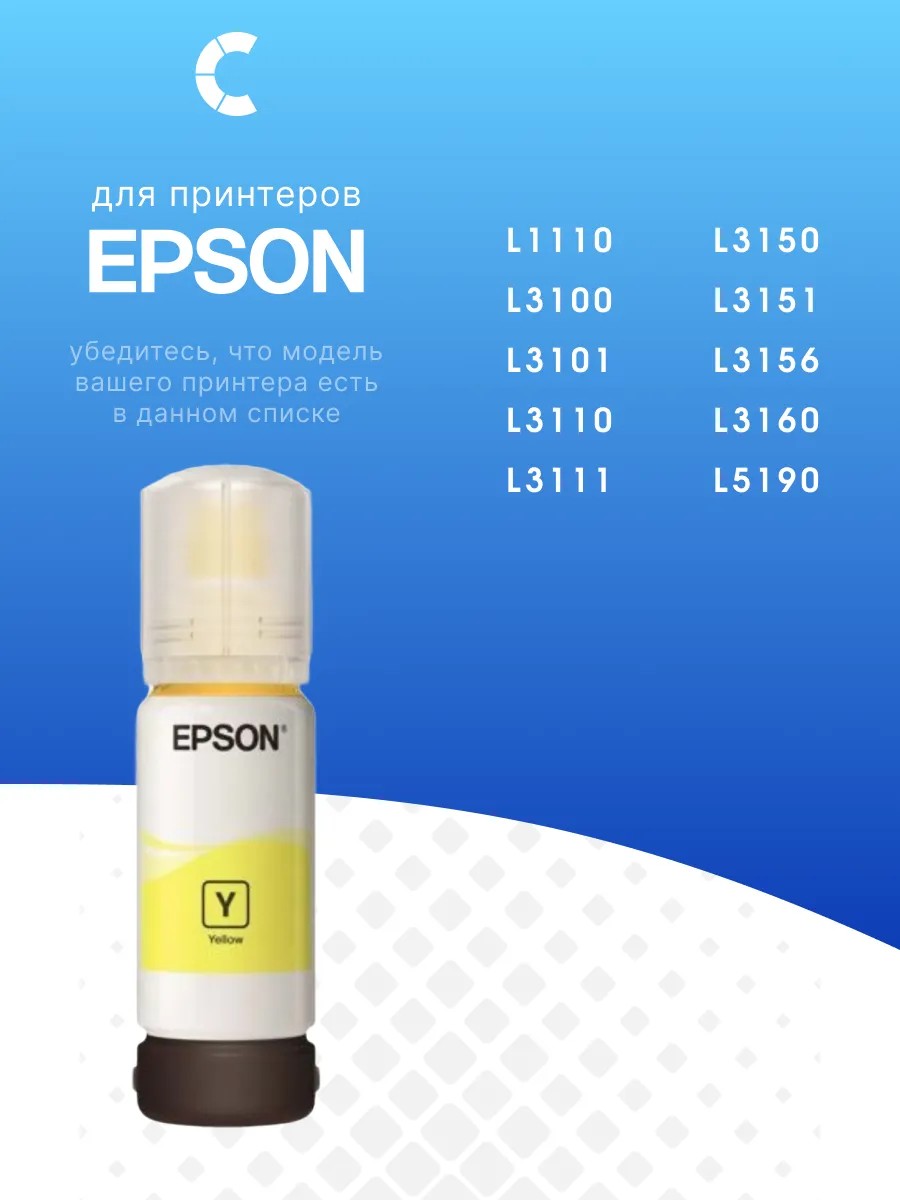 Чернила оригинал Epson C13T00S44A желтый (65 мл) 103. Для принтеров: Epson L1110, L3100, L3101, L3110, L3111, L3150, L3151, L3156, L3160, L5190.Характеристики